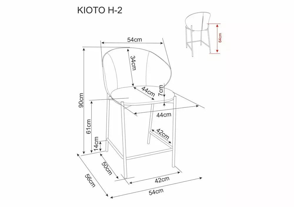 Стул барный SIGNAL KIOTO H-2 t.254 (серый/черный)