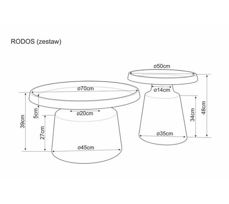 Комплект Signal HOLA, 2 стола журнальных (белый мрамор/золотой)